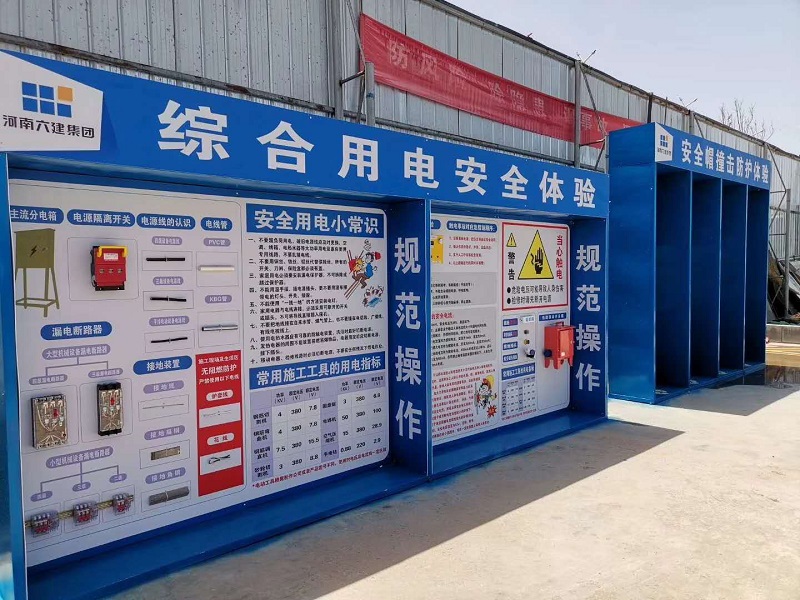 河南六建建筑集團承建鄭州航空港區旭港置業有限公司護航中心項目工程從我公司購買了安全帽撞擊防護體驗、綜合用電體驗兩個體驗項目為員工做安全教育培訓,項目部利用有限的場地設置最具代表性的體驗項目為施工人員做安全教育培訓,為公司的這一舉動點贊。