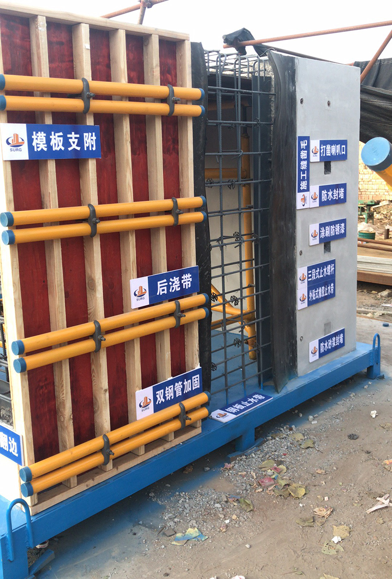 材質及做法:包含梁、板、柱、剪力墻混凝土搗制、鋼筋綁扎,后澆帶、鋼板止水帶、施工縫留設,止水螺桿安裝(封堵)模板支附、支模架搭設等工藝。